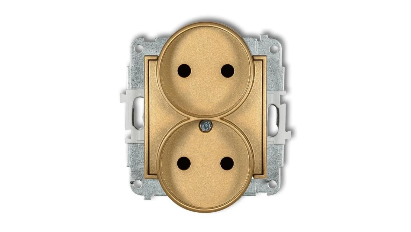 ICON Mechanizm gniazda podwójnego do ramki bez uziemienia 2x2P (przesłony torów prądowych) złoty 29IGPR-2p