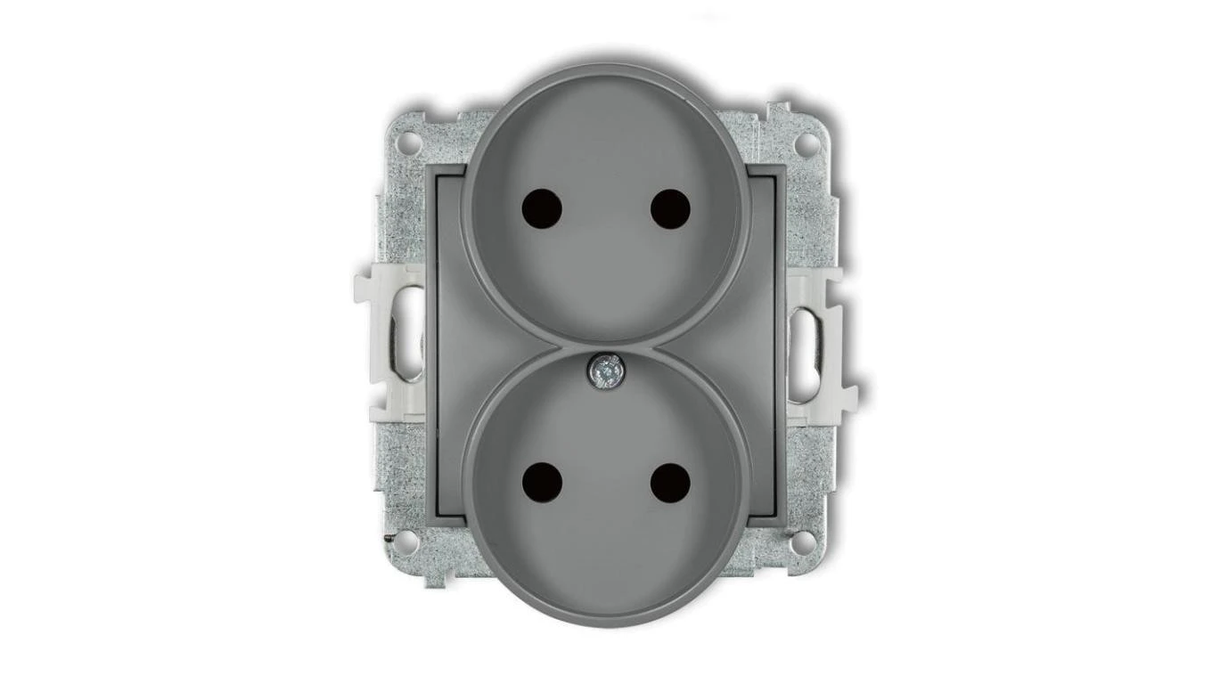 ICON Mechanizm gniazda podwójnego do ramki bez uziemienia 2x2P (przesłony torów prądowych) szary mat 27IGPR-2p