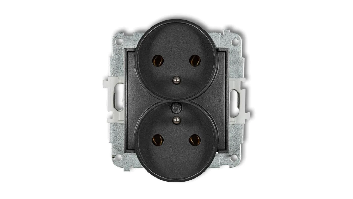 ICON Mechanizm gniazda podwójnego do ramki z uziemieniem 2x(2P+Z) (bez przesłon torów prądowych) grafitowy 11IGPR-2z