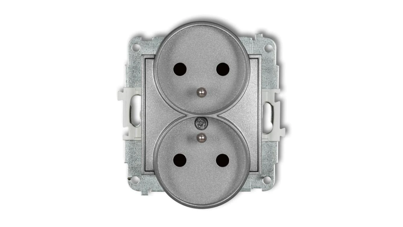 ICON Mechanizm gniazda podwójnego do ramki z uziemieniem 2x(2P+Z) (przesłony torów prądowych) srebrny metalik 7IGPR-2zp