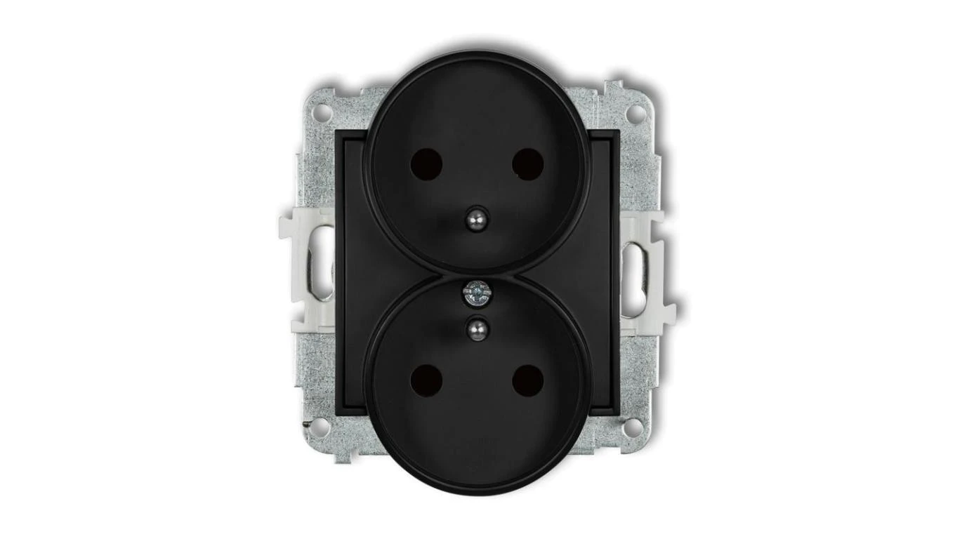 ICON Mechanizm gniazda podwójnego do ramki z uziemieniem 2x(2P+Z) (przesłony torów prądowych) czarny mat 12IGPR-2zp