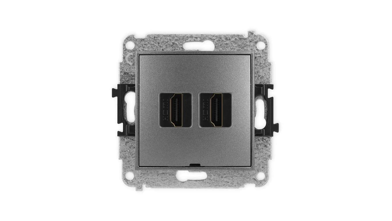 ICON Mechanizm gniazda podwójnego HDMI 2.0, bez pola opisowego grafitowy 11IHDMIBO-4