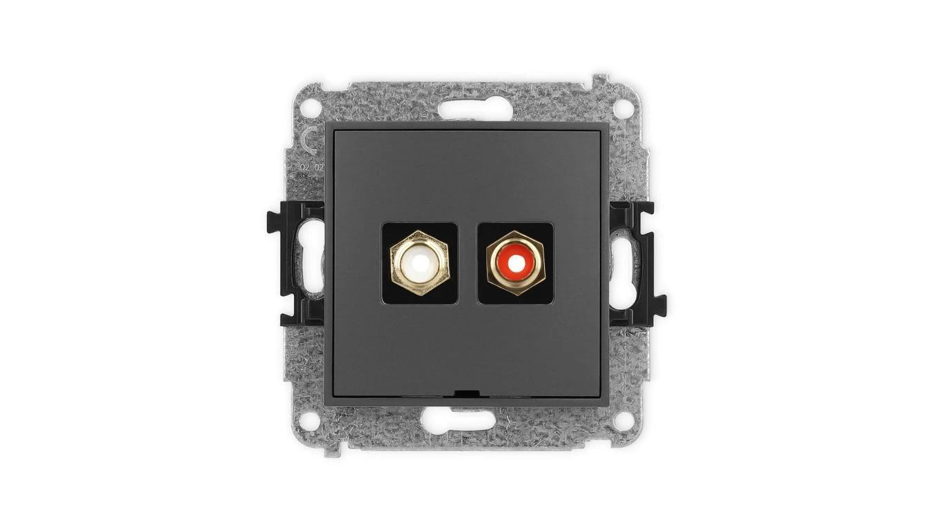ICON Mechanizm gniazda podwójnego RCA, bez pola opisowego (typu cinch - biały i czerwony, pozłacany) grafitowy mat 28IGRCABO-2