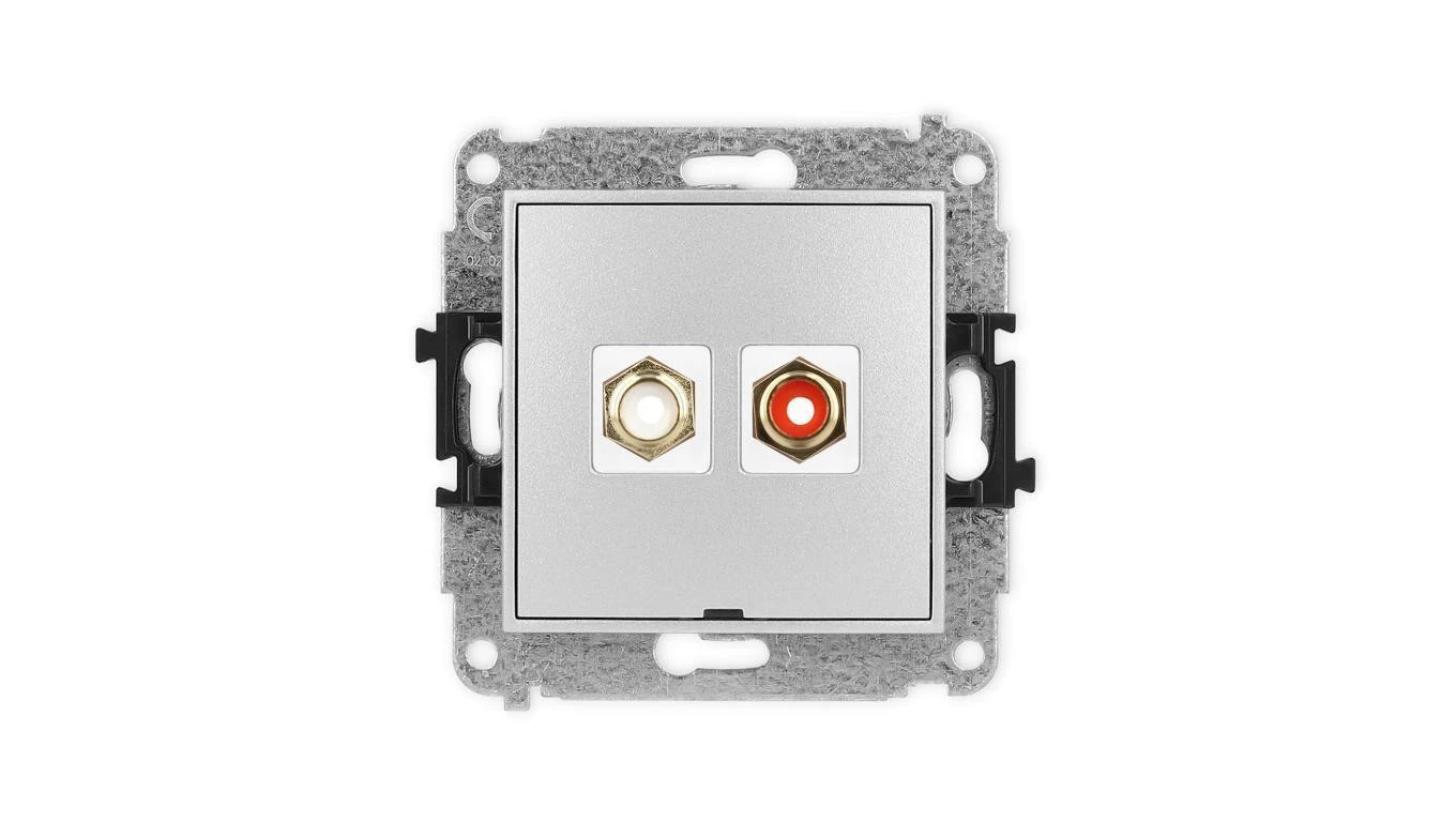 ICON Mechanizm gniazda podwójnego RCA, bez pola opisowego (typu cinch - biały i czerwony, pozłacany) srebrny metalik 7IGRCABO-2
