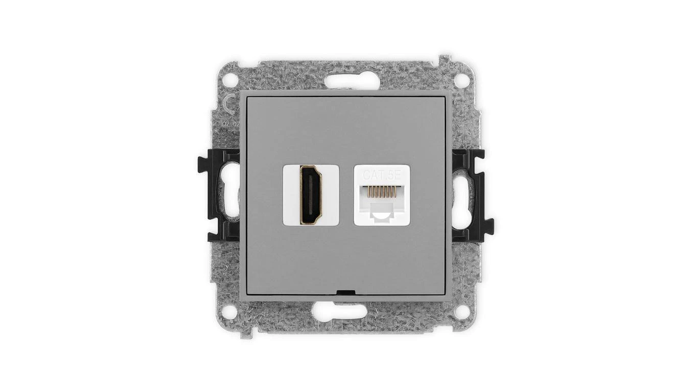 ICON Mechanizm gniazda pojedynczego HDMI 2.0 + gniazda komp. poj. 1xRJ45, kat. 5e, 8-styk, bez pola opisowego szary mat 27IGHKBO