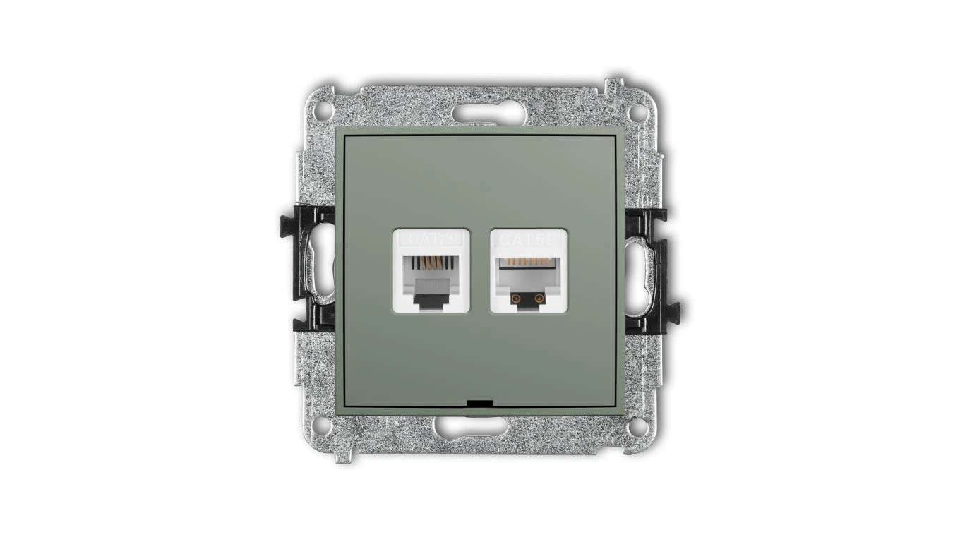 ICON Mechanizm gniazda telefonicznego 1xRJ11 + komp. poj. 1xRJ45 kat. 5e 8-stykowy, beznarzędziowe, bez opisu szałwiowy 61IGTKBO