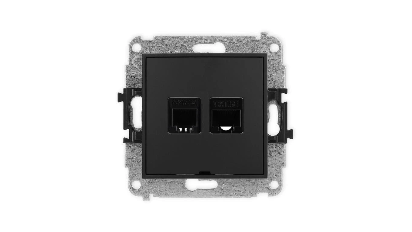 ICON Mechanizm gniazda telefonicznego 1xRJ11 + komputerowego 1xRJ45 kat. 5e 8-styk beznarzędziowe, bez opisu czarny mat 12IGTKBO