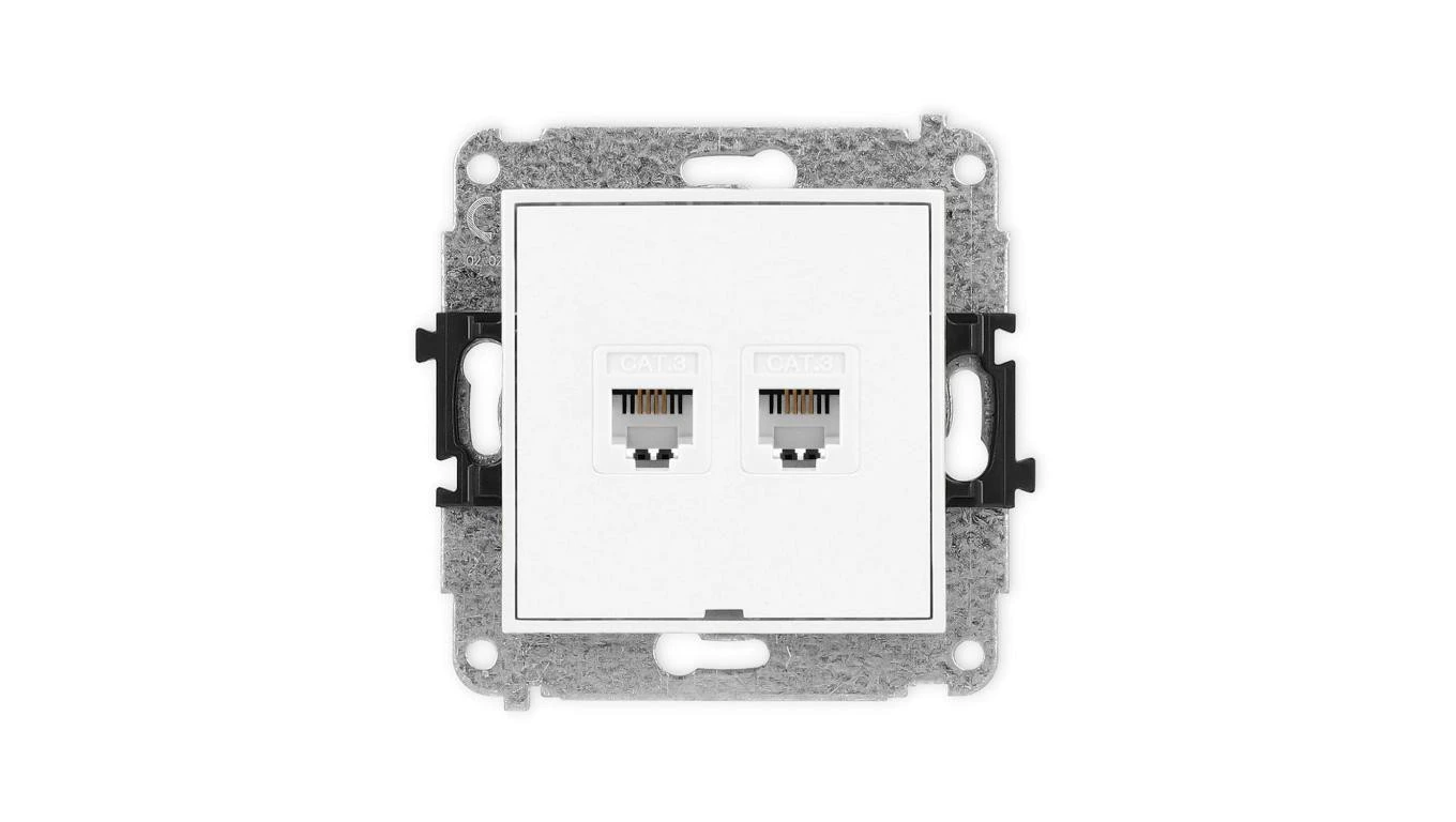 ICON Mechanizm gniazda telefonicznego podwójnego 2xRJ11, 4-stykowy, beznarzędziowe, bez pola opisowego biały IGTBO-2