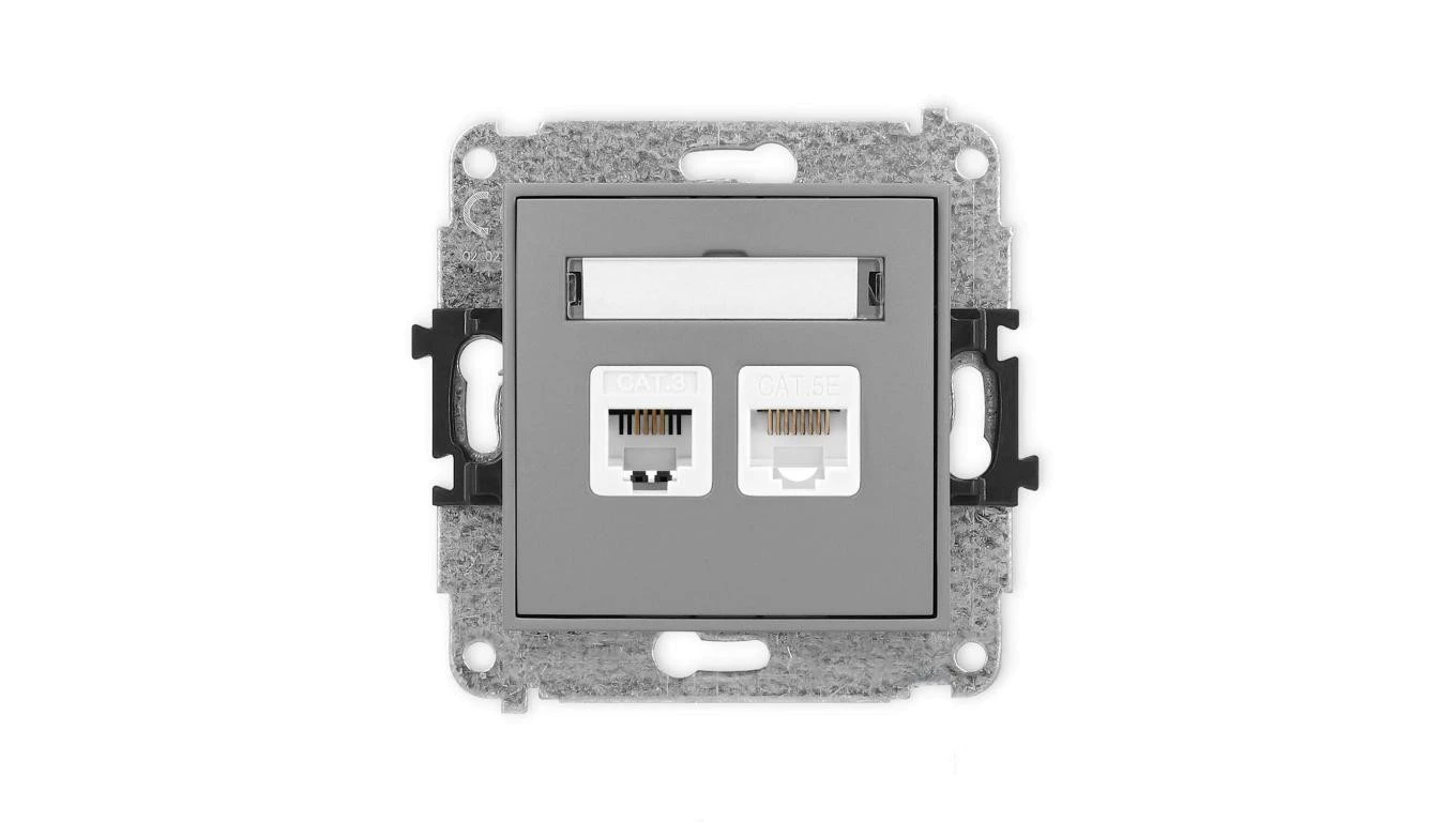 ICON Mechanizm gniazda telefonicznego poj. 1xRJ11 + komputerowego poj. 1xRJ45, kat. 5e, 8-styk, beznarzędziowe szary mat 27IGTK