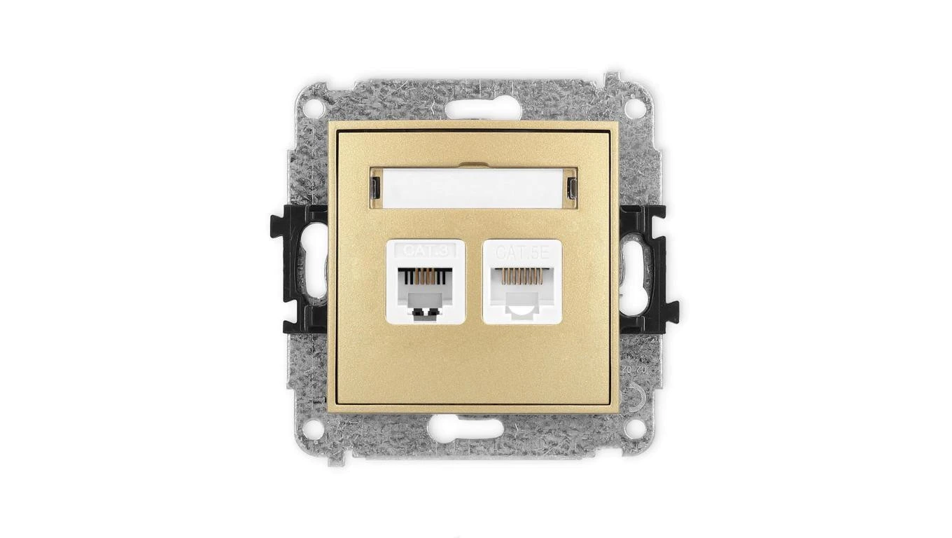 ICON Mechanizm gniazda telefonicznego poj. 1xRJ11 + komputerowego poj. 1xRJ45, kat. 5e, 8-styk, beznarzędziowe złoty 29IGTK