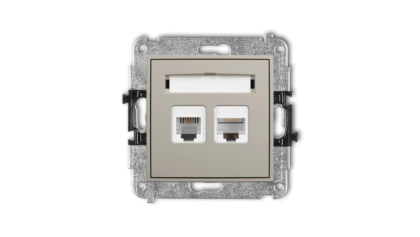 ICON Mechanizm gniazda telefonicznego poj. 1xRJ11 + komputerowego poj. 1xRJ45, kat. 5e, 8-stykowy, beznarzędziowe taupe 60IGTK