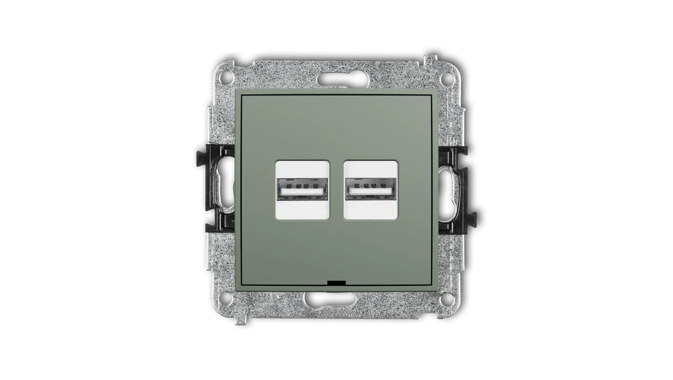 ICON Mechanizm ładowarki USB podwójnej 2xUSB A, 15,5W max., 5V, 3.1A, bez pola opisowego szałwiowy 61ICUSBBO-6
