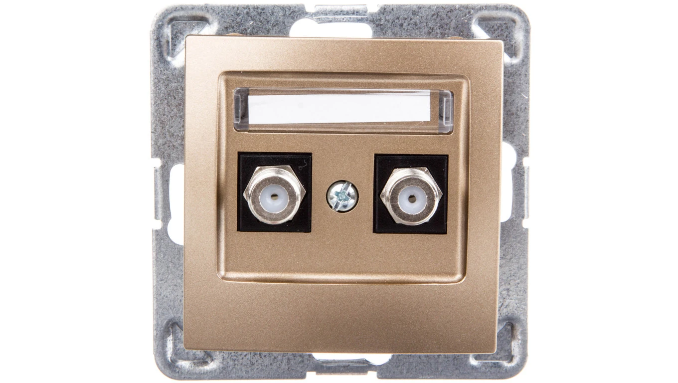 IMPRESJA Gniazdo antenowe podwójne typu F złoty metalik GPA-2YF/m/28