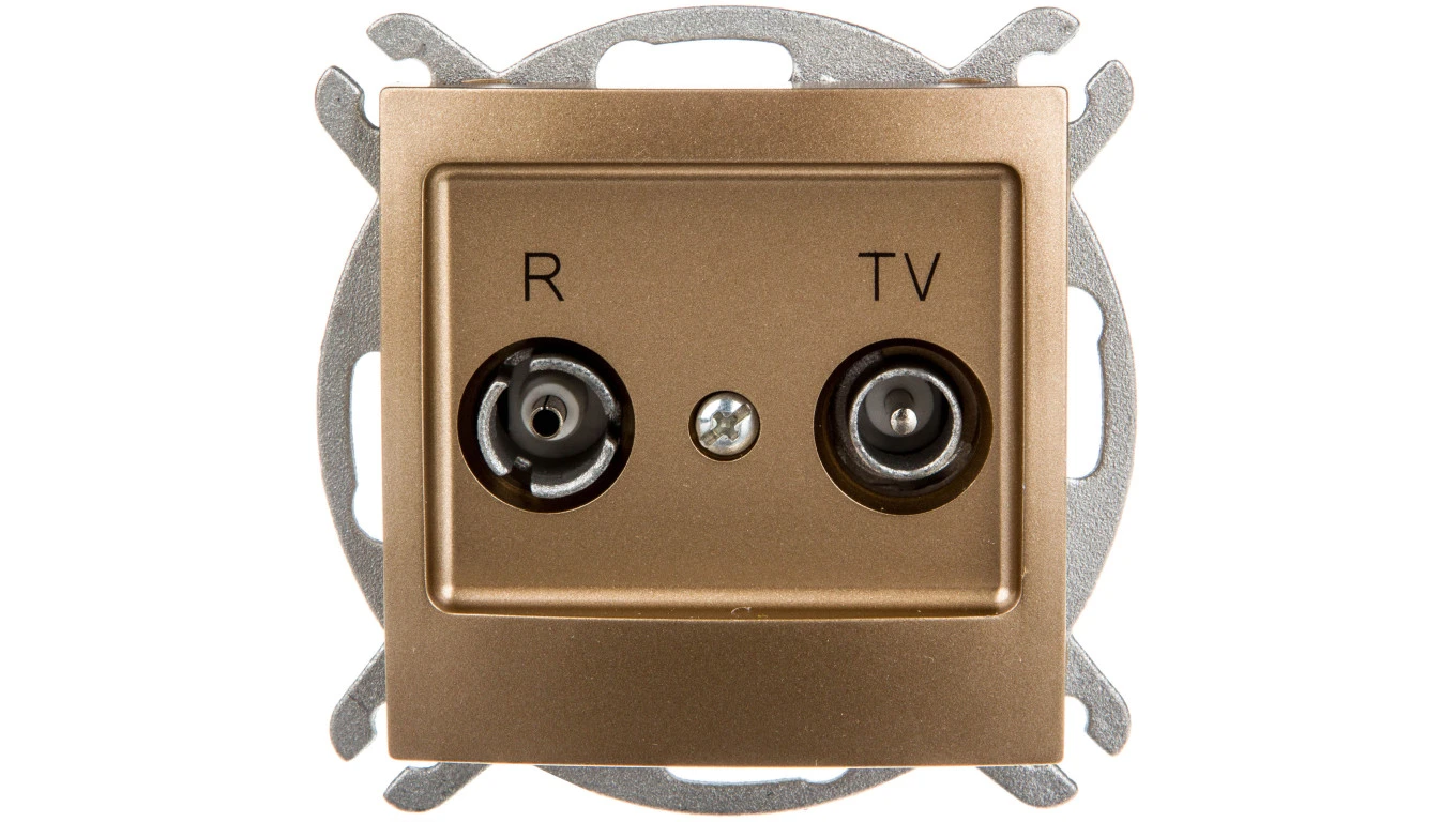 IMPRESJA Gniazdo antenowe RTV przelotowe 16dB złoty metalik GPA-16YP/m/28