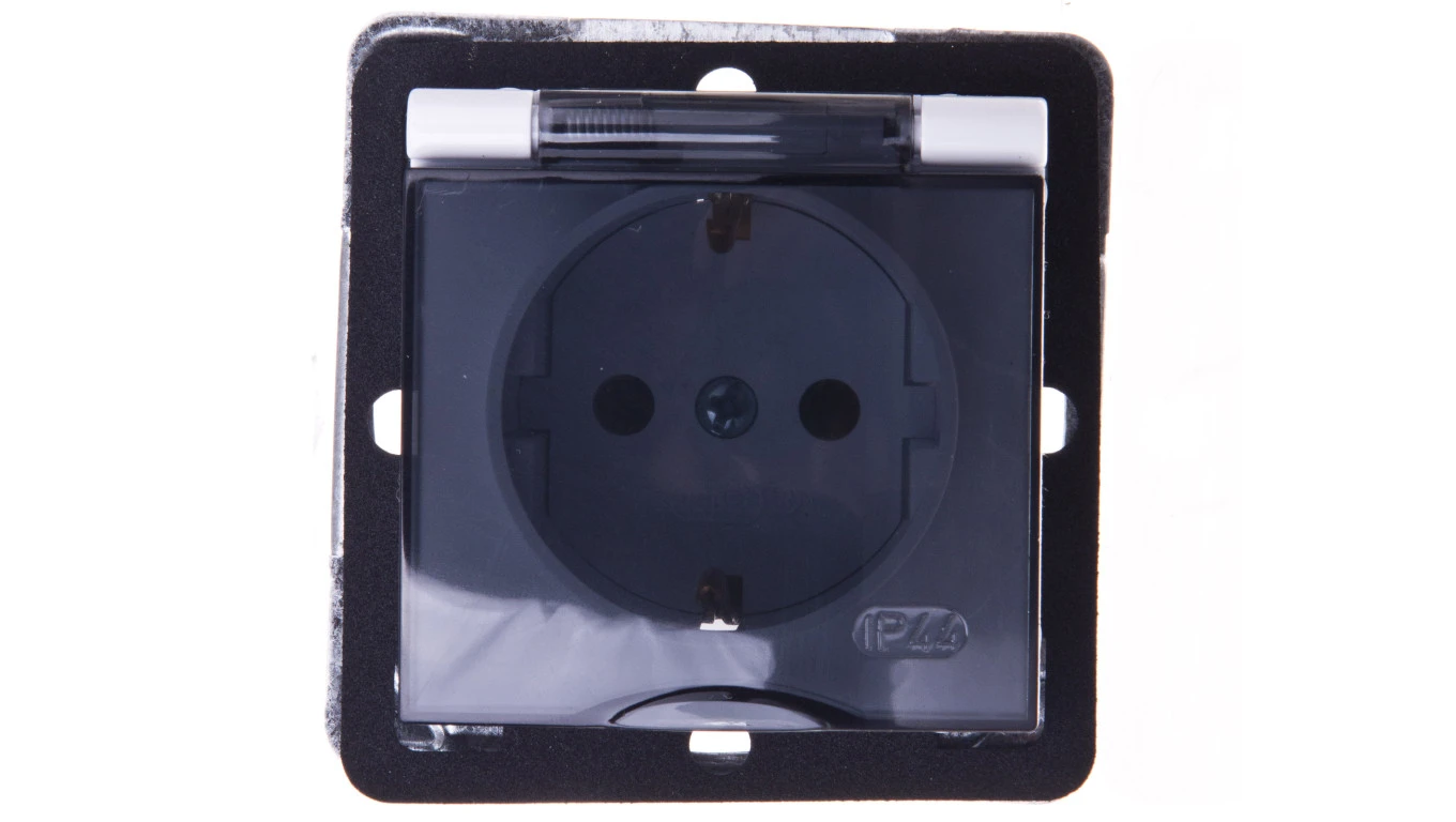 IMPRESJA Gniazdo bryzgoszczelne z/u Schuko IP44 klapka przezroczysta białe GPH-1YS/m/00/d