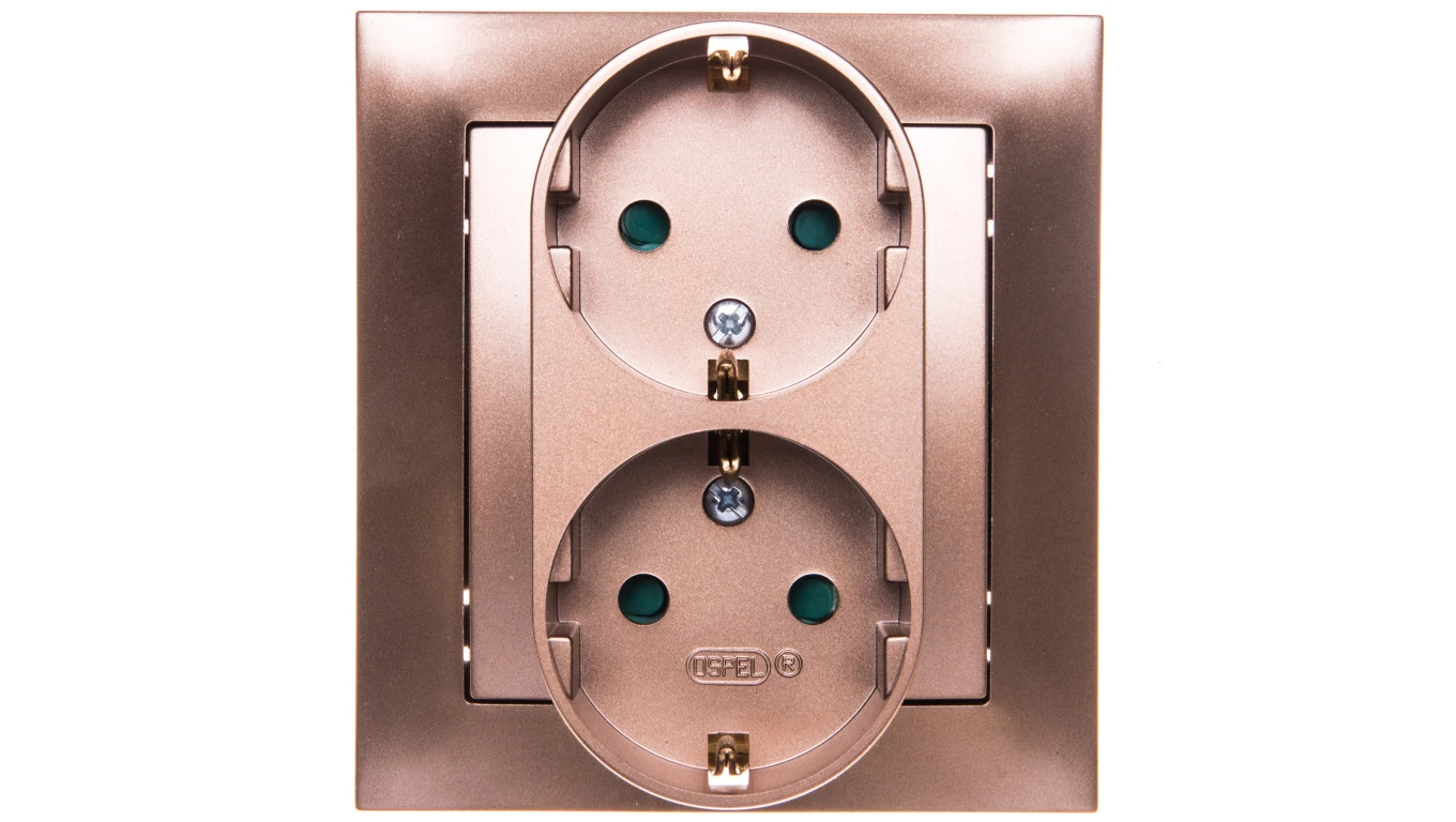 IMPRESJA Gniazdo podwójne z/u Schuko z przesłonami złoty metalik GP-2YSP/28