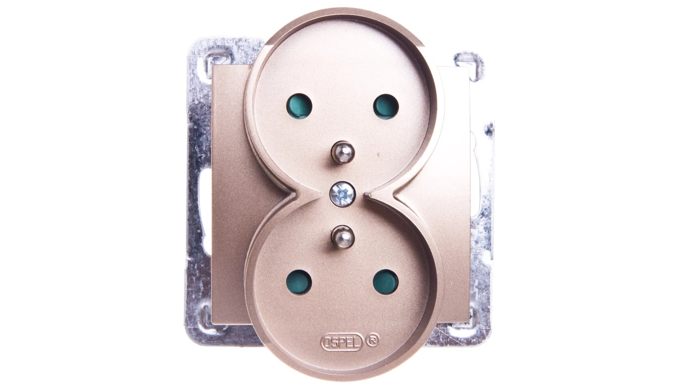 IMPRESJA Gniazdo podwójne z/u z przesłonami złoty metalik GP-2YRZP/m/28