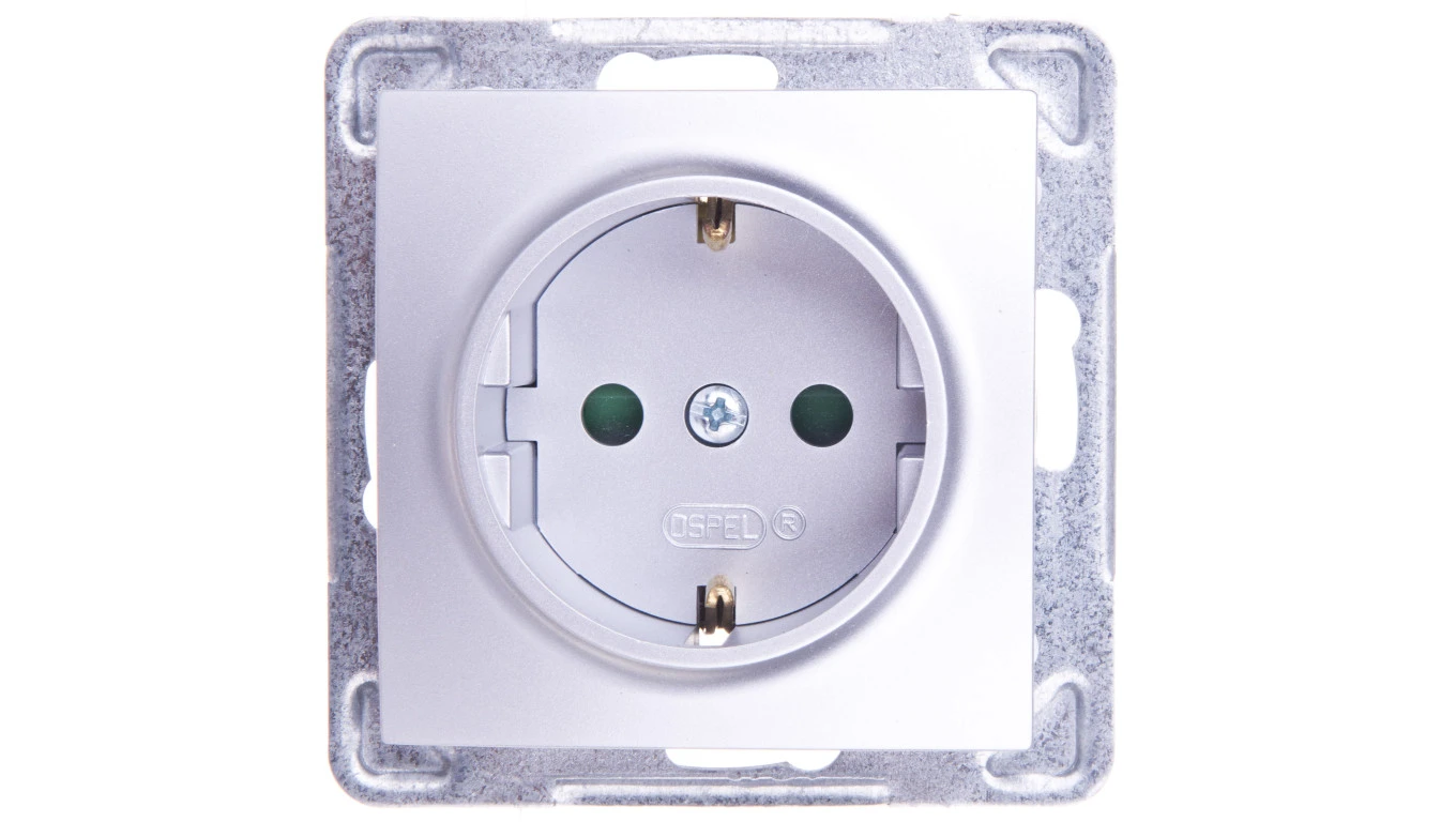 IMPRESJA Gniazdo pojedyncze z/u Schuko z przesłonami srebrne GP-1YSP/m/18