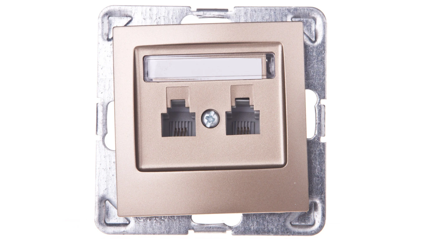 IMPRESJA Gniazdo telefoniczne podwójne RJ11 równoległe złoty metalik GPT-2YR/m/28