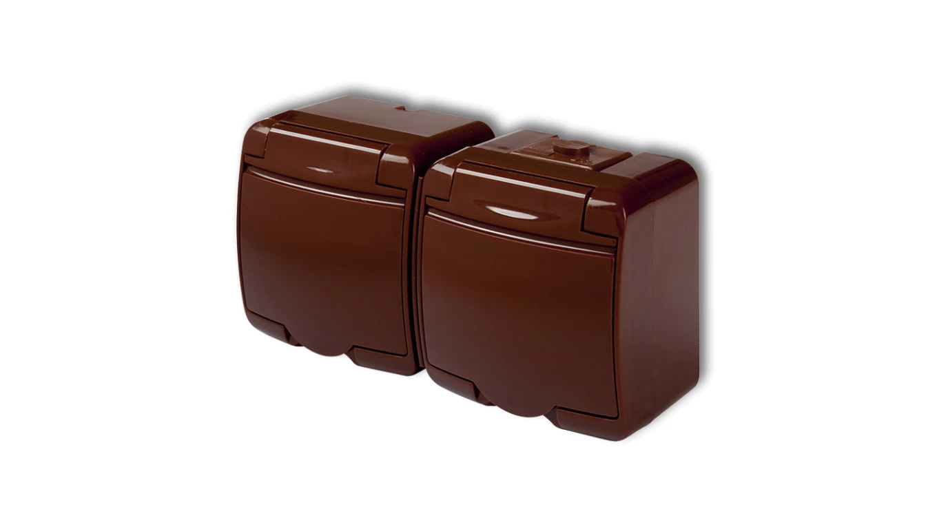 JUNIOR Gniazdo podwójne z/u (klapka brązowa) brązowy 4GHE-2p