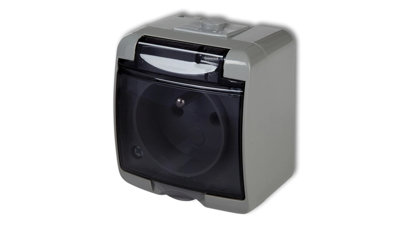 JUNIOR Gniazdo pojedyncze z/u (klapka dymna) popielaty 10GHE-1dp