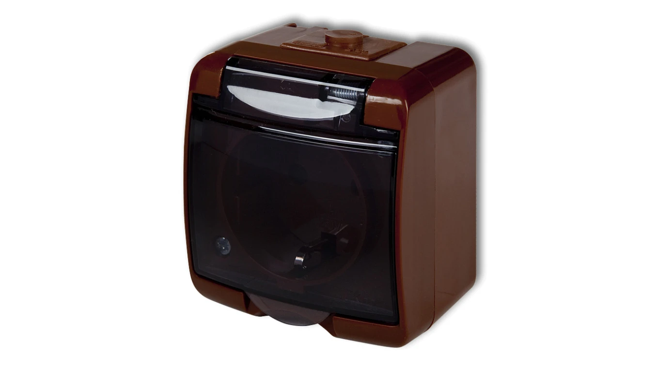 JUNIOR Gniazdo pojedyncze z/u SCHUKO (klapka dymna) brązowy 4GHE-1sd