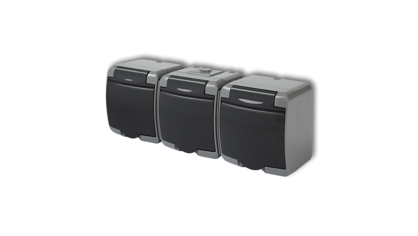 JUNIOR Gniazdo potrójne 3x(z/u) (klapka grafitowa) popielaty / grafitowy 30GHE-3p