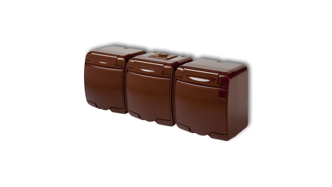 JUNIOR Gniazdo potrójne 3x(z/u) SCHUKO (klapka brązowa) brązowy 4GHE-3sp