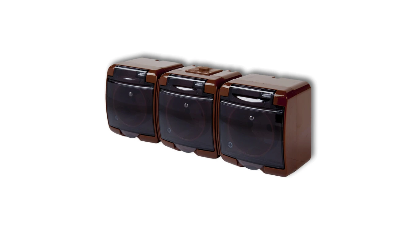 JUNIOR Gniazdo potrójne z/u (klapka dymna) brązowy IP54 4GHE-3d
