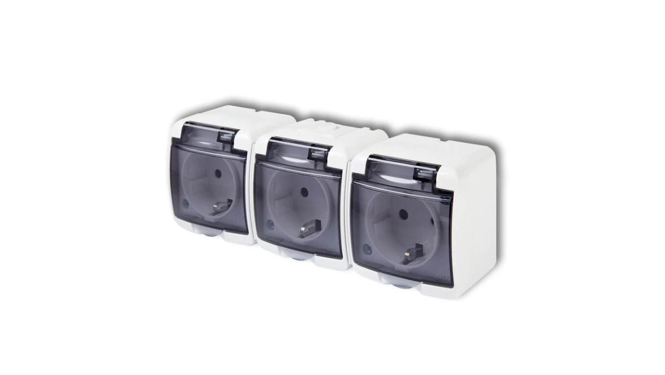 JUNIOR Gniazdo potrójne z/u SCHUKO (klapka dymna) biały GHE-3sd