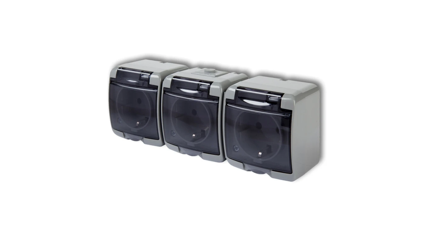 JUNIOR Gniazdo potrójne z/u SCHUKO (klapka dymna) popielaty 10GHE-3sd