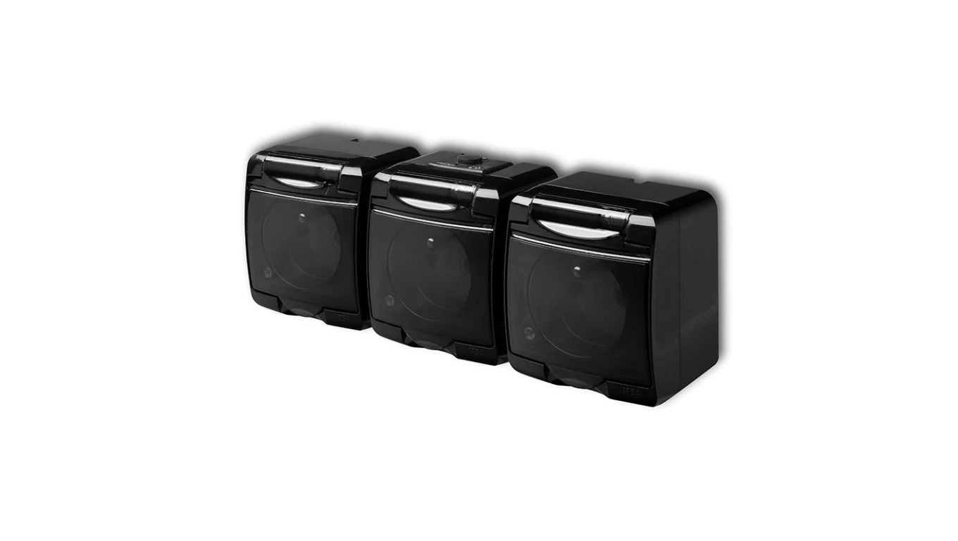 JUNIOR Gniazdo potrójne z uziemieniem 3x(2P+Z) (klapka dymna bez przesłon) czarny 12GHE-3d