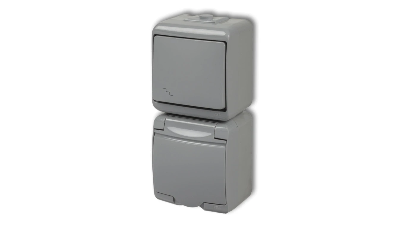 JUNIOR Łącznik schodowy + gniazdo hermetyczne (klapka popielata) popielaty 10WGHP-3