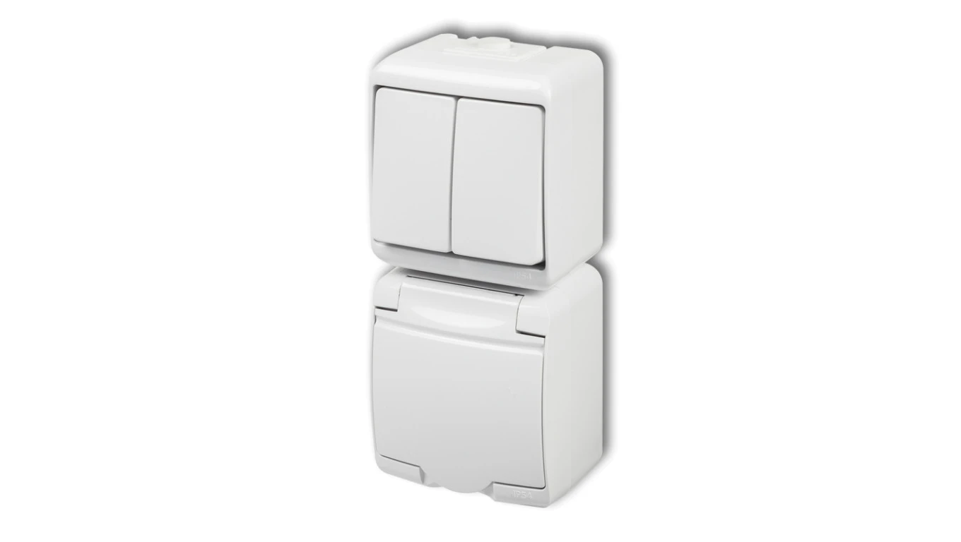 JUNIOR Łącznik świecznikowy + gniazdo hermetyczne (klapka biała) biały WGHP-2