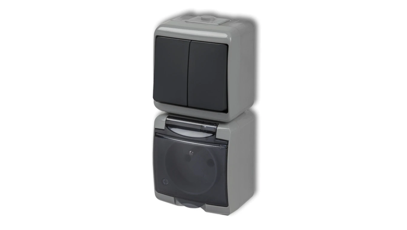 JUNIOR Łącznik świecznikowy z gniazdem hermetycznym (klapka dymna) popielaty / grafitowy 30WGHP-2dp