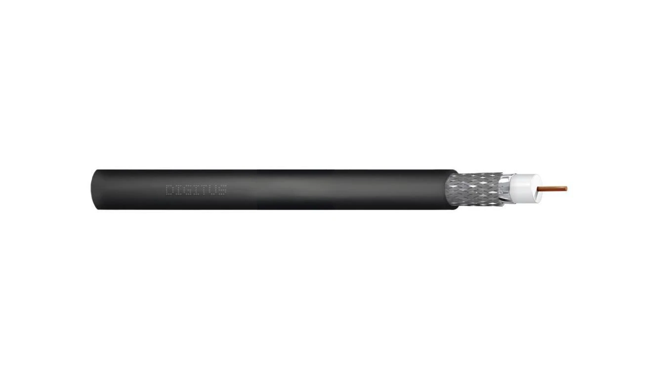 Kabel koncentryczny DIGITUS RG-6, 75 Ohm ekran (2x folia +oplot 77) Fca PE czarny DK-RG6-O-1 /100m/