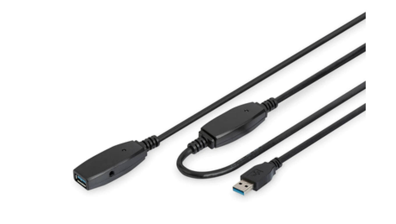 Kabel przedłużający USB 3.0 SuperSpeed Typ USB A/USB A M/Ż aktywny czarny 10m DA-73105