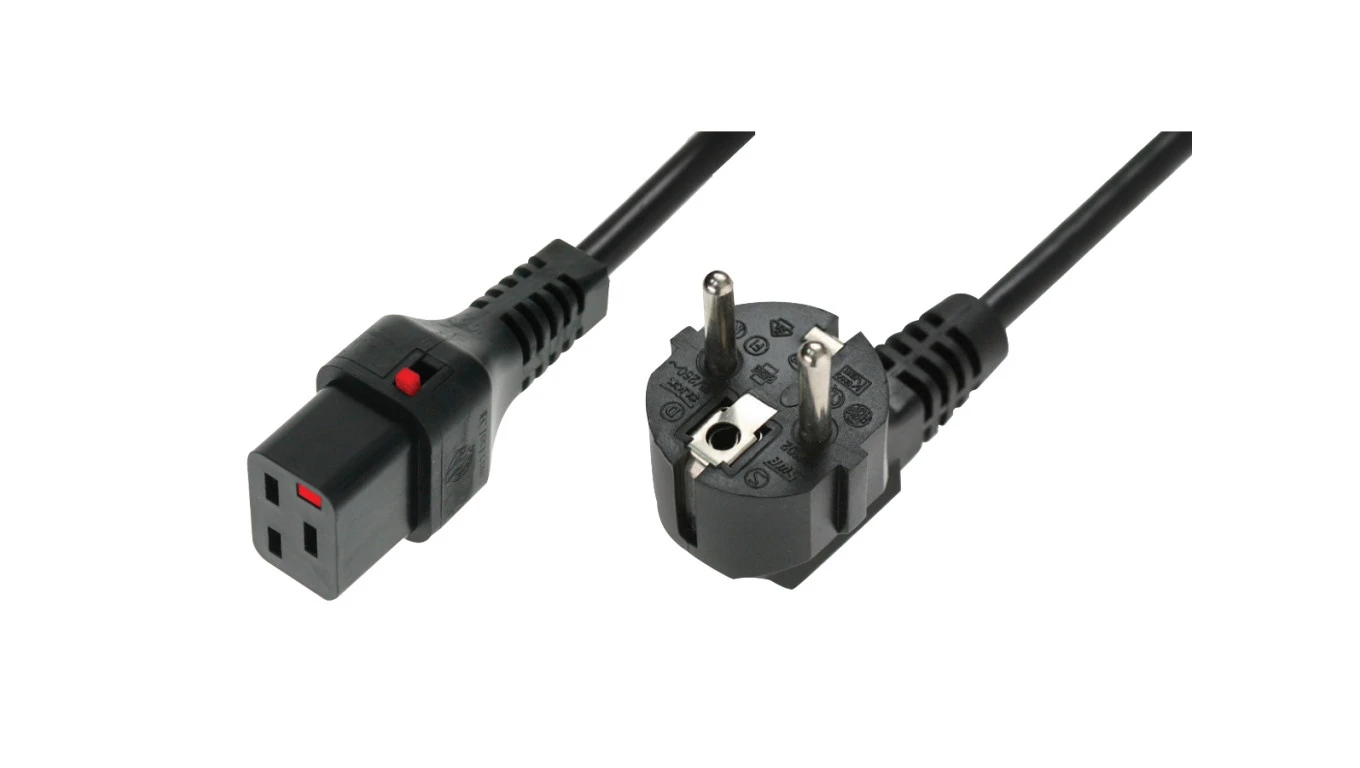 Kabel zasilający serwerowy 3x1,5 Schuko kątowy/IEC C19 prosty M/Ż czarny IEC-EL262S /2m/