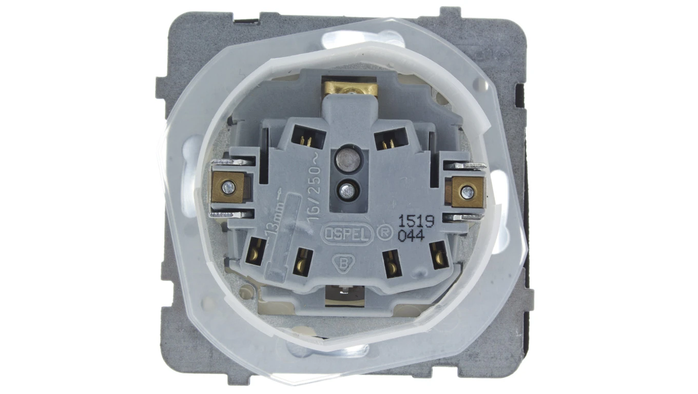 KARO Gniazdo bryzgoszczelne z/u IP44 z przesłonami klapka przezroczysta ecru perłowy GPH-1SZP/m/42/d
