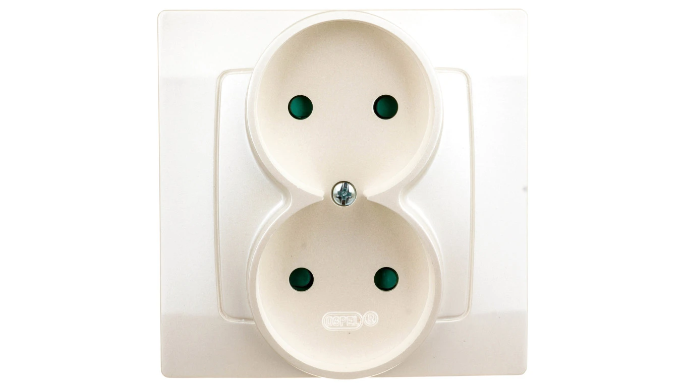 KARO Gniazdo podwójne b/u z przesłonami ecru perłowy GP-2SP/42