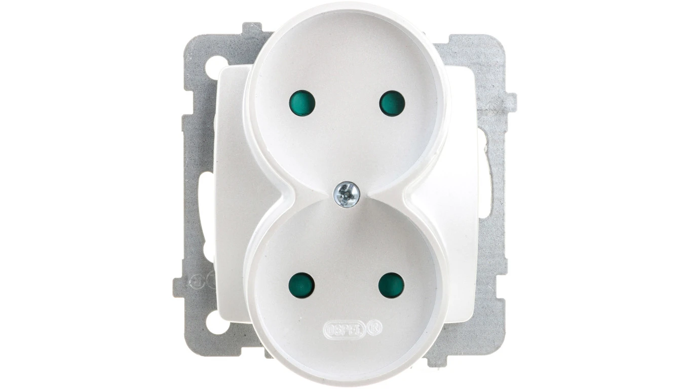 KARO Gniazdo podwójne b/u z przesłonami srebrny perłowy GP-2SRP/m/43