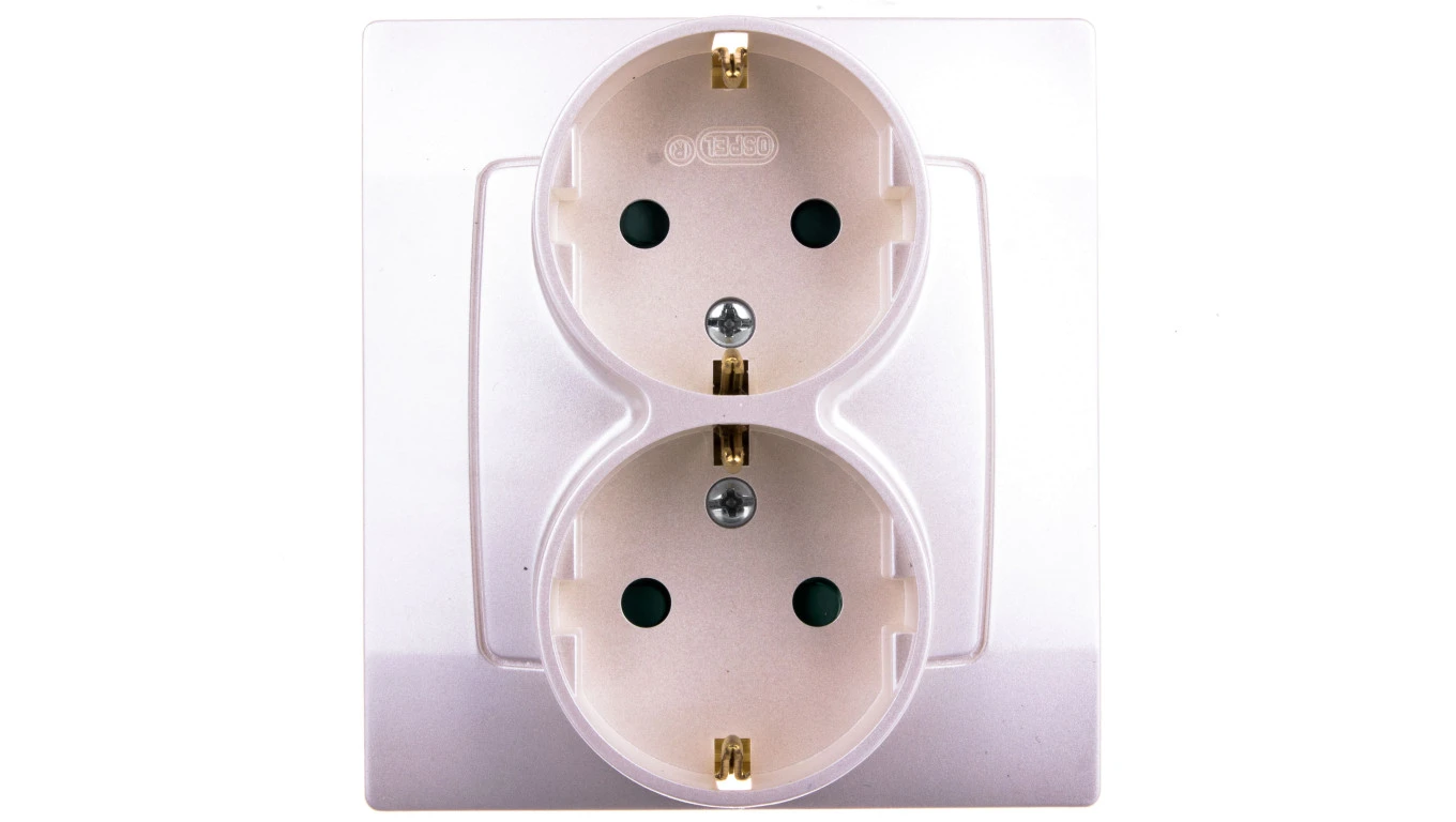 KARO Gniazdo podwójne z/u Schuko z przesłonami ecru perłowy GP-2SSP/42