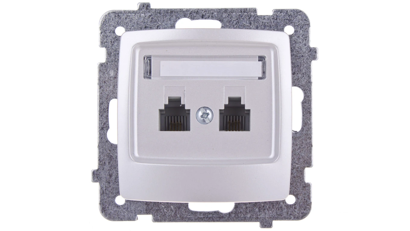 KARO Gniazdo telefoniczne podwójne RJ11 niezależne srebrny perłowy GPT-2SN/m/43
