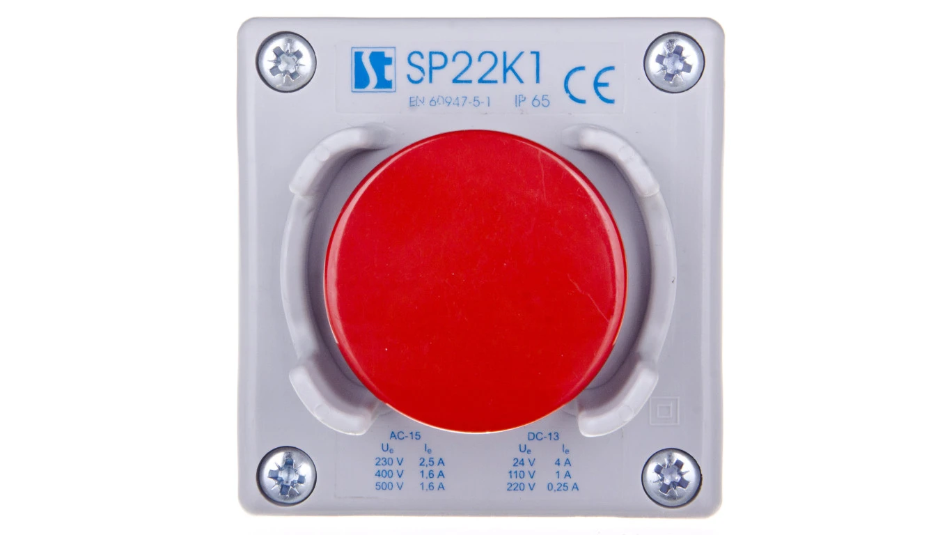 Kaseta sterownicza 1-otworowa przycisk grzybkowy z osłoną czerwony 1R szara IP65 SP22K1\25-1
