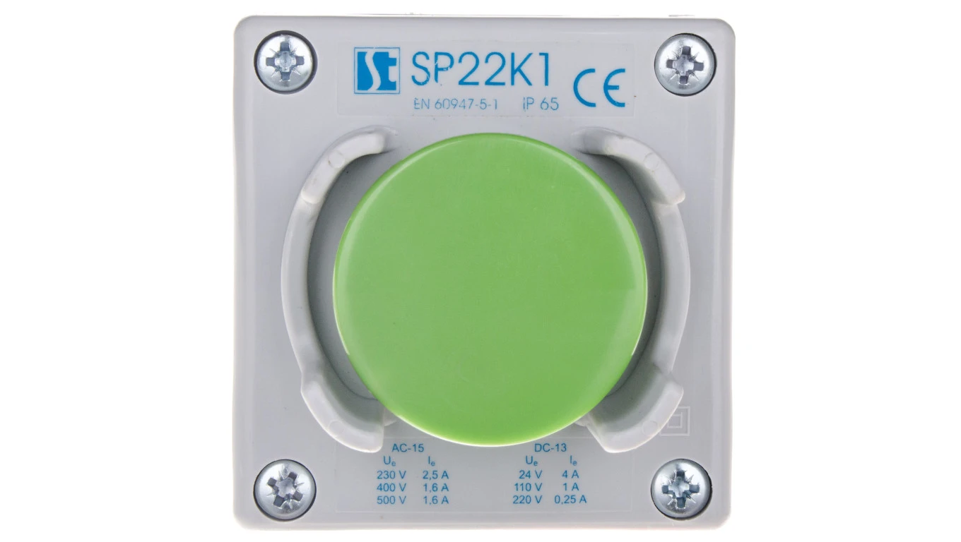 Kaseta sterownicza 1-otworowa przycisk grzybkowy z osłoną zielony 1Z szara IP65 SP22K1\26-1