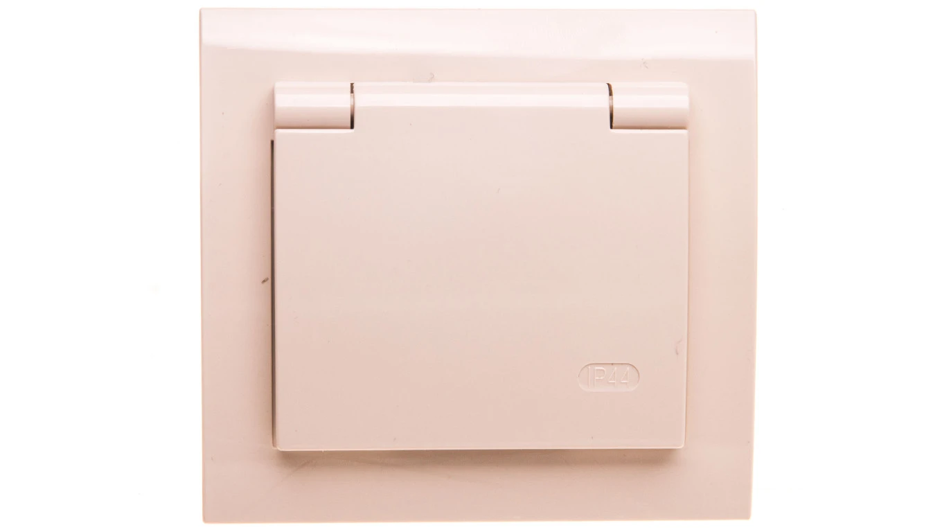 KIER Gniazdo bryzgoszczelne z/u IP44 klapka beżowe GPH-1WZ/01/w