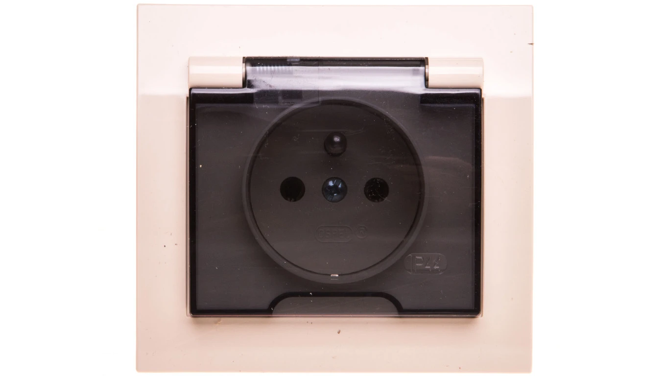 KIER Gniazdo bryzgoszczelne z/u IP44 klapka przezroczysta beżowe GPH-1WZ/01/d
