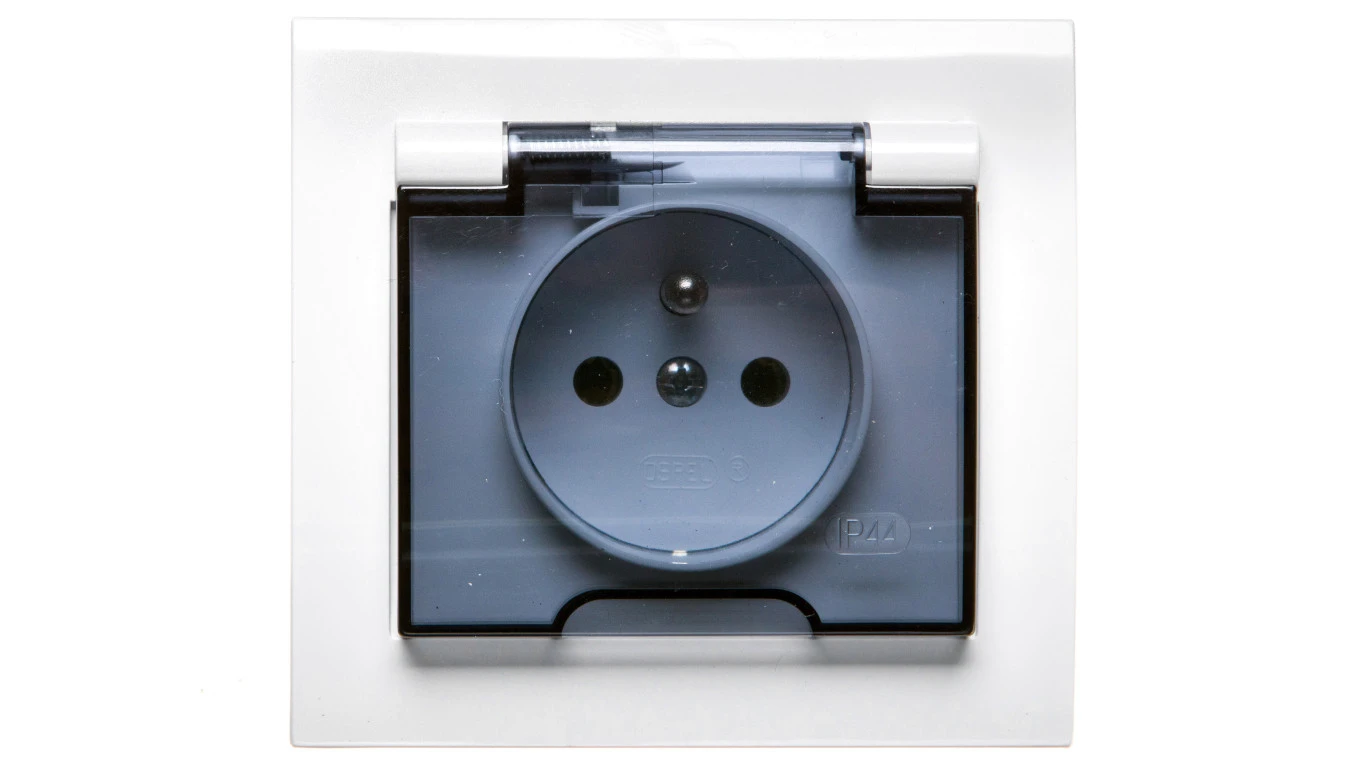 KIER Gniazdo bryzgoszczelne z/u IP44 klapka przezroczysta białe GPH-1WZ/00/d