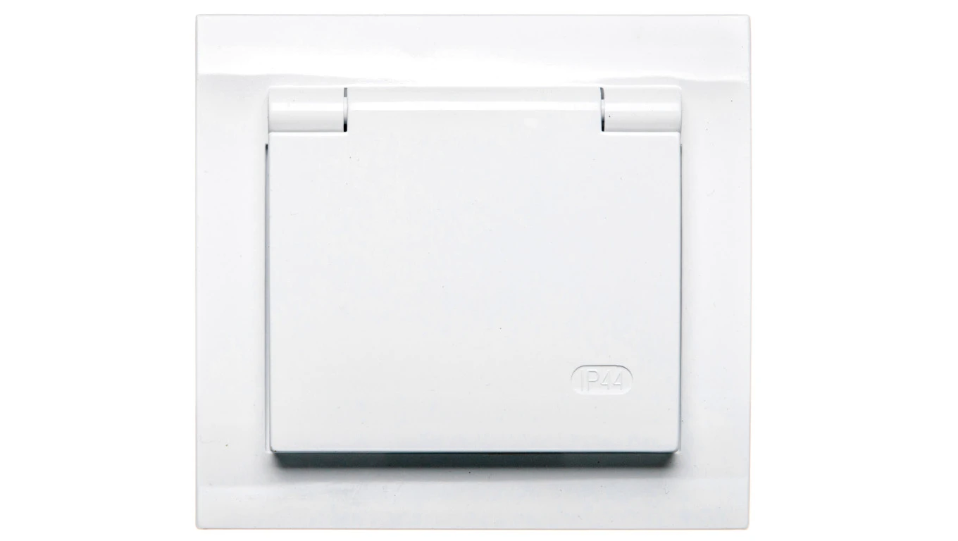 KIER Gniazdo bryzgoszczelne z/u IP44 z przesłonami klapka biała GPH-1WZP/00/w