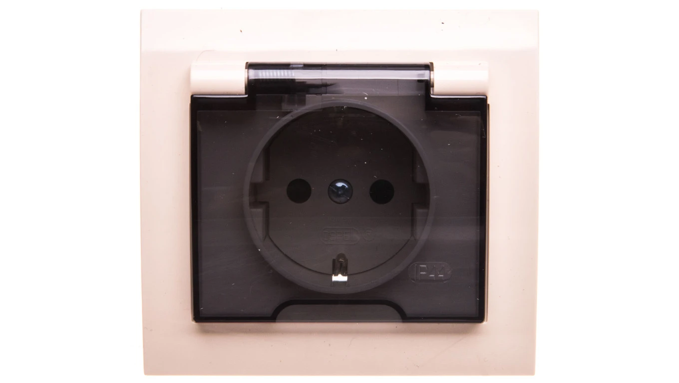 KIER Gniazdo bryzgoszczelne z/u Schuko IP44 z przesłonami klapka przezroczysta beżowe GPH-1WSP/01/d